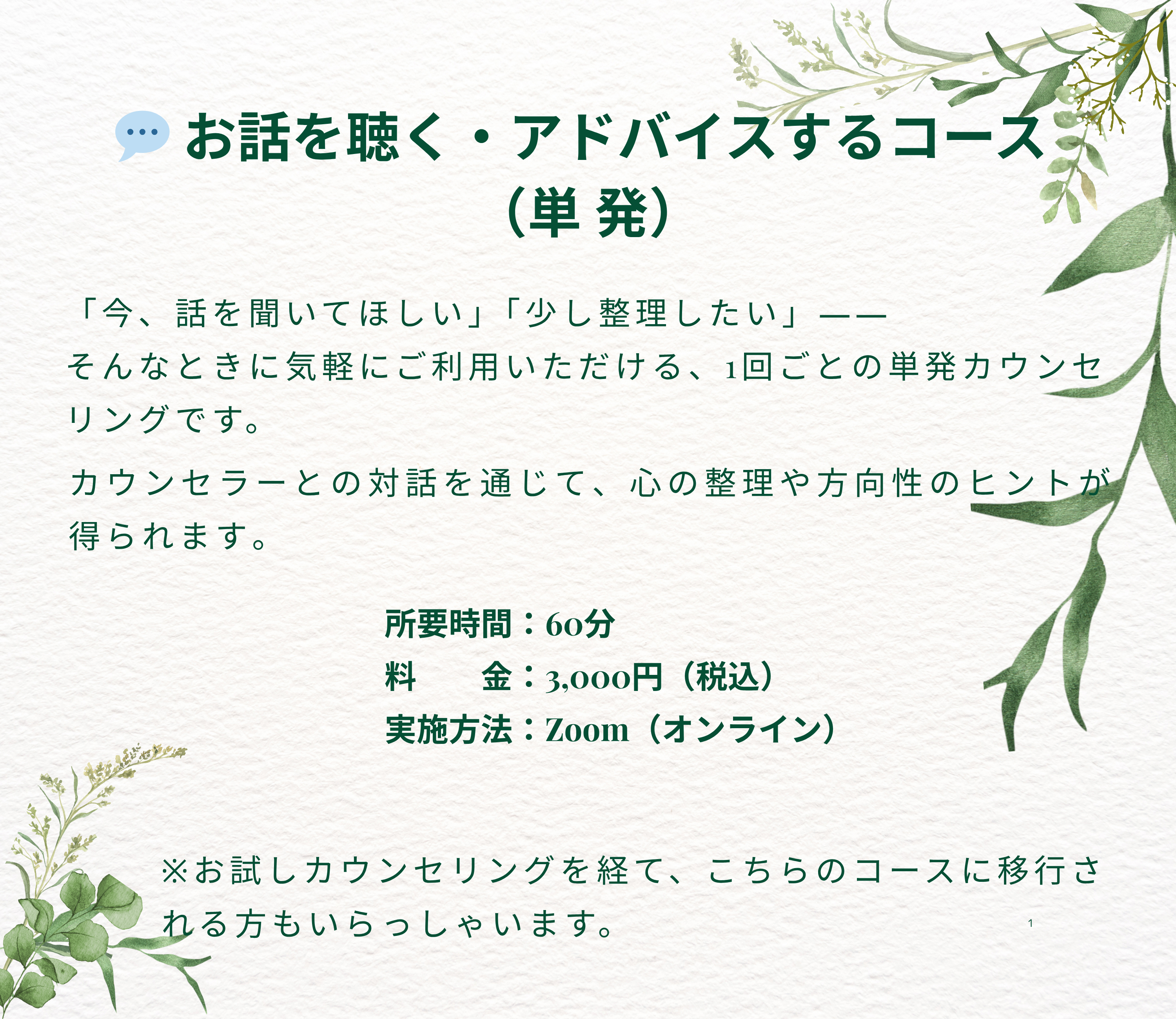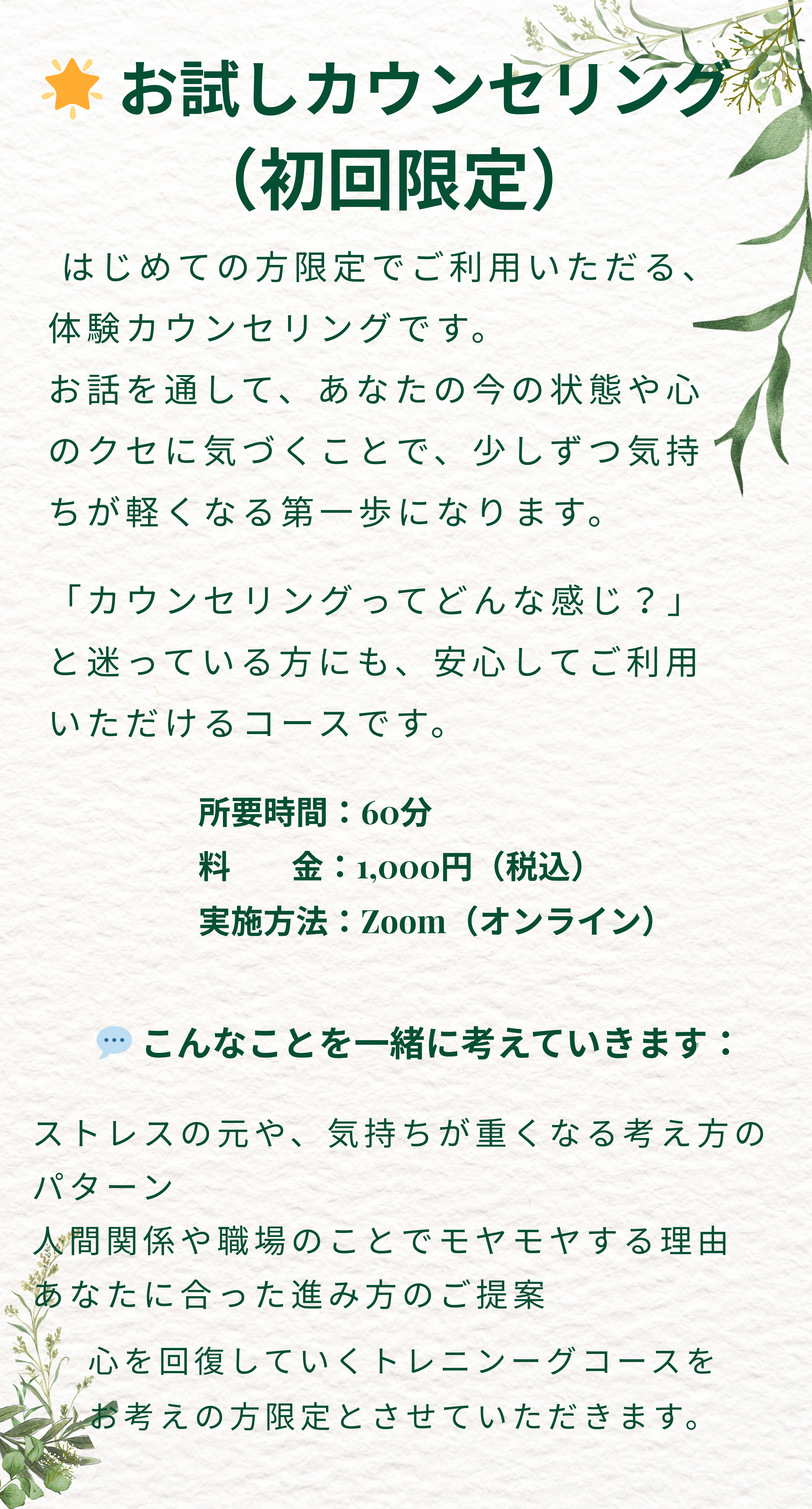 まずは〈お試しカウンセリング〉で、今の気持ちを安心してお話してみませんか?