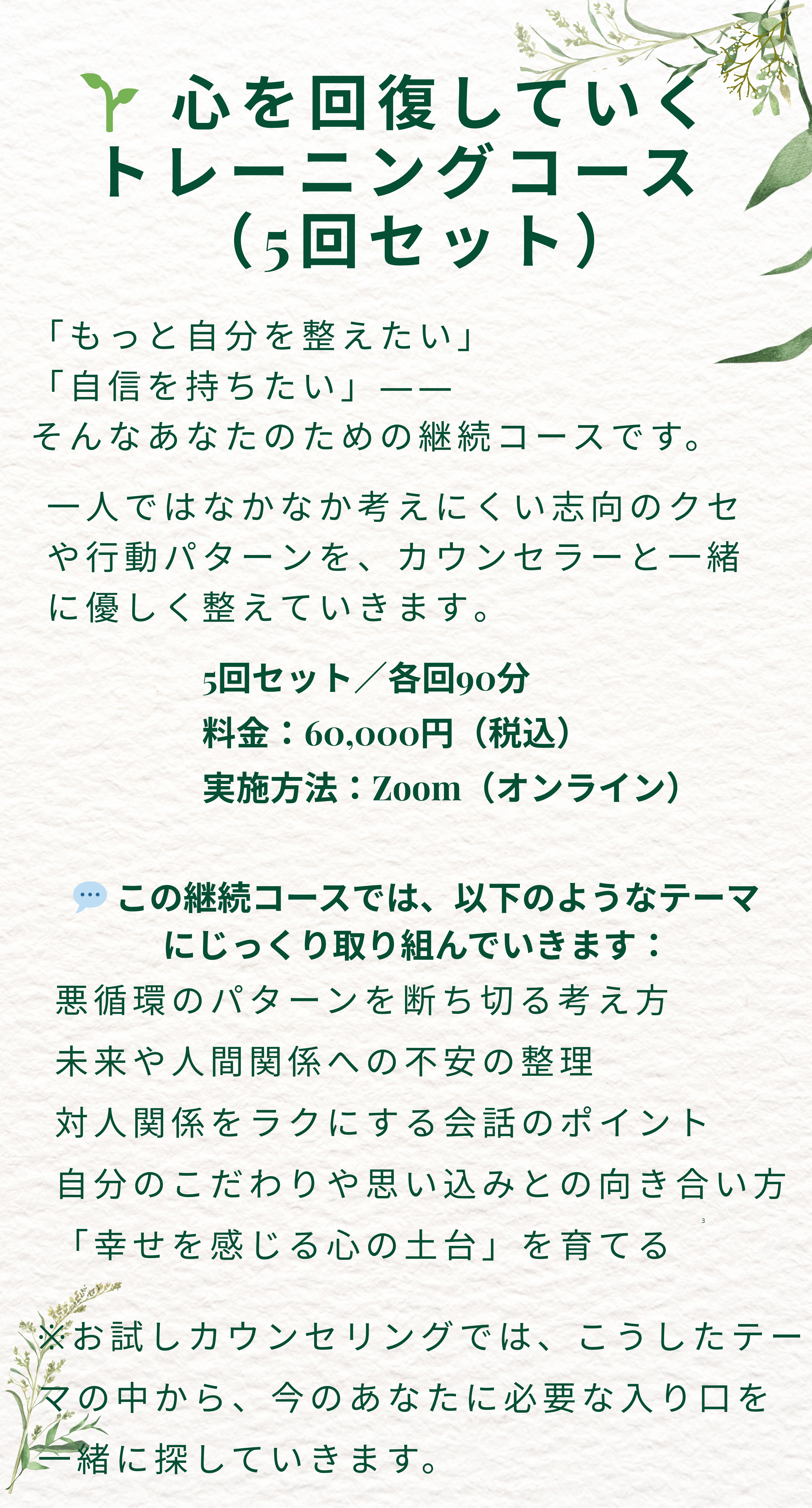 ご予約が確定しましたら、ZoomのURLとお支払いのご案内をお送りします